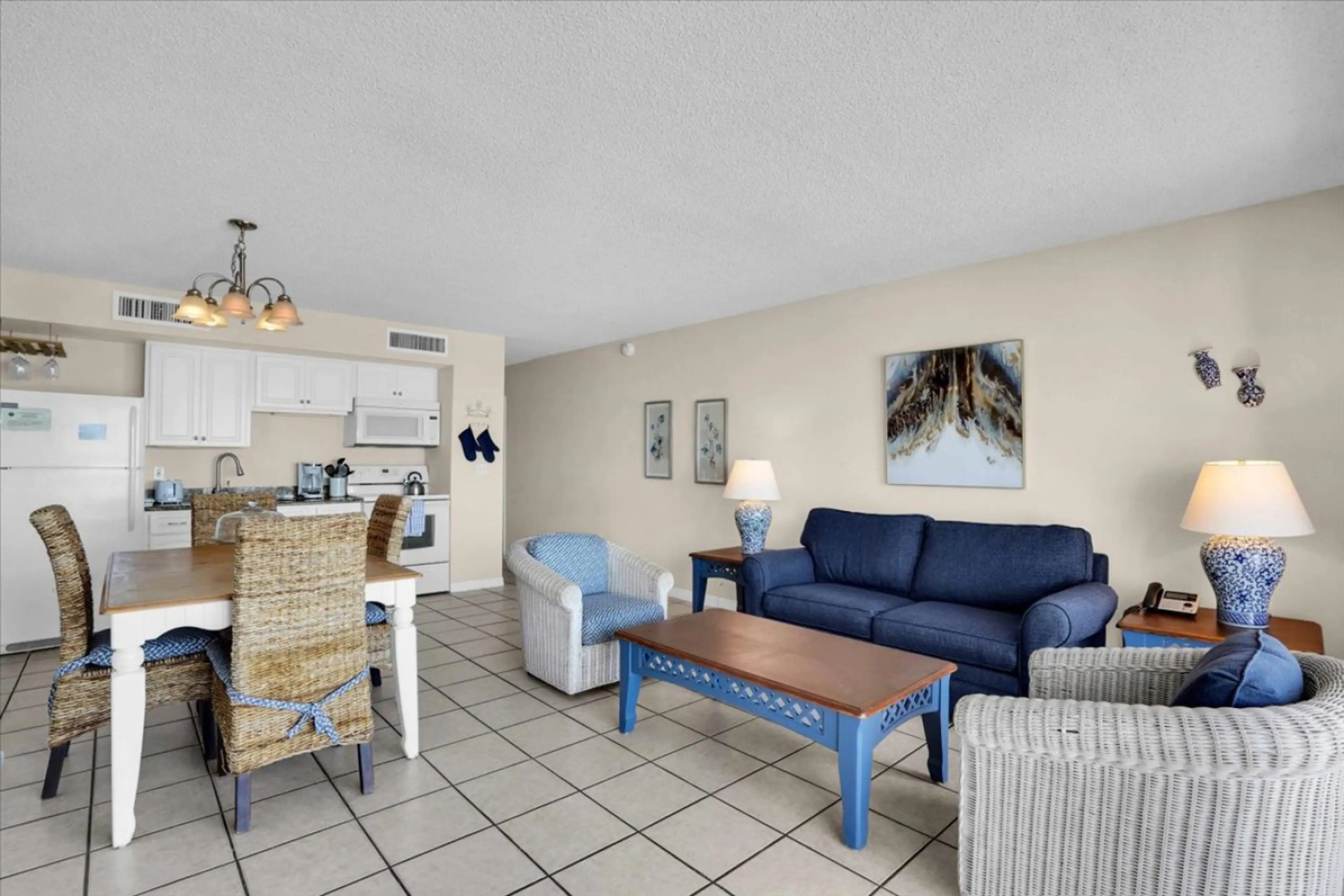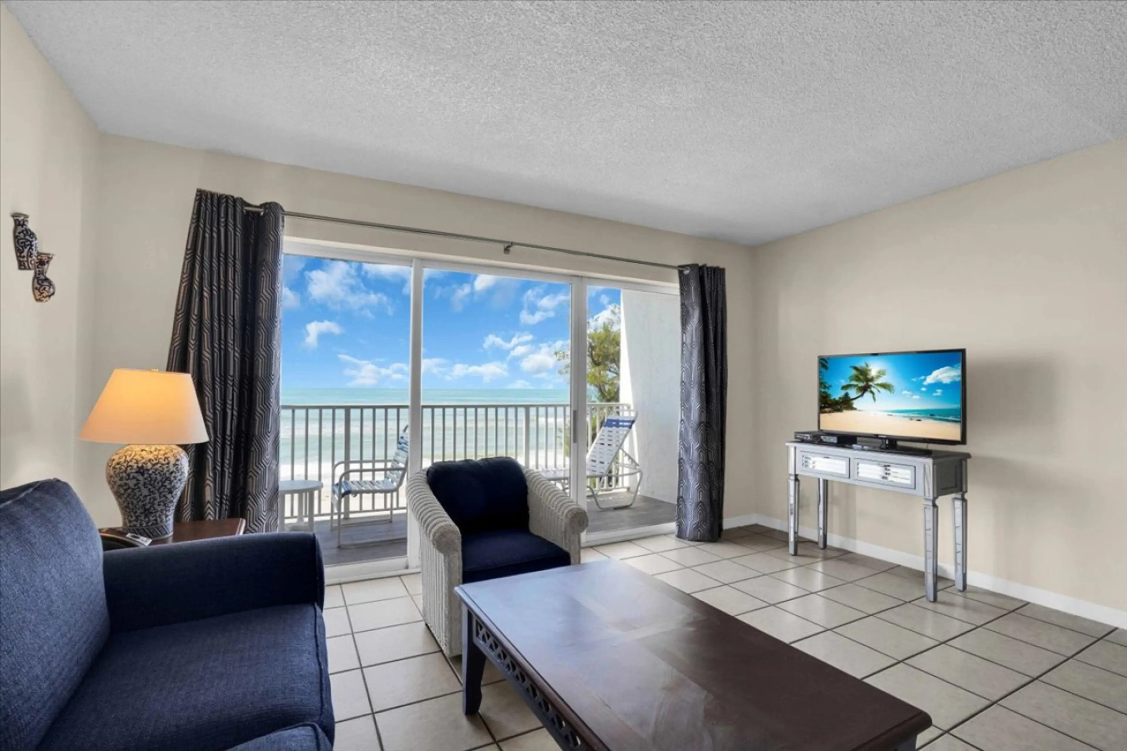 Vacation condo 502 is a 5th-floor one-bedroom, one bath vacation condo with a private balcony that overlooks the beach. It is just what you need to have a wonderful vacation. Two queen beds in the bedroom with a queen sleeper in the living room will sleep 6. This very comfortably furnished condo is ...